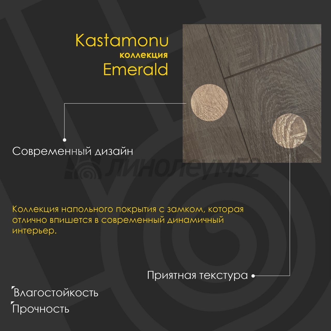 | Дополнительные свойства: | Влагостойкий / Реалистичное тиснение |