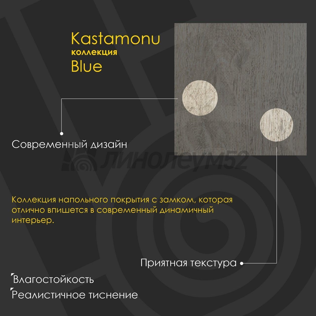 | Дополнительные свойства: | Влагостойкий / Реалистичное тиснение |