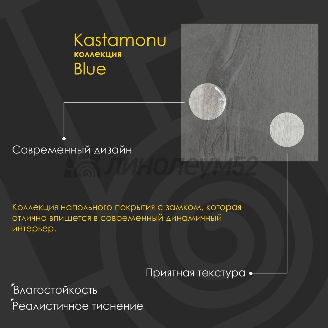 | Дополнительные свойства: | Влагостойкий / Реалистичное тиснение |