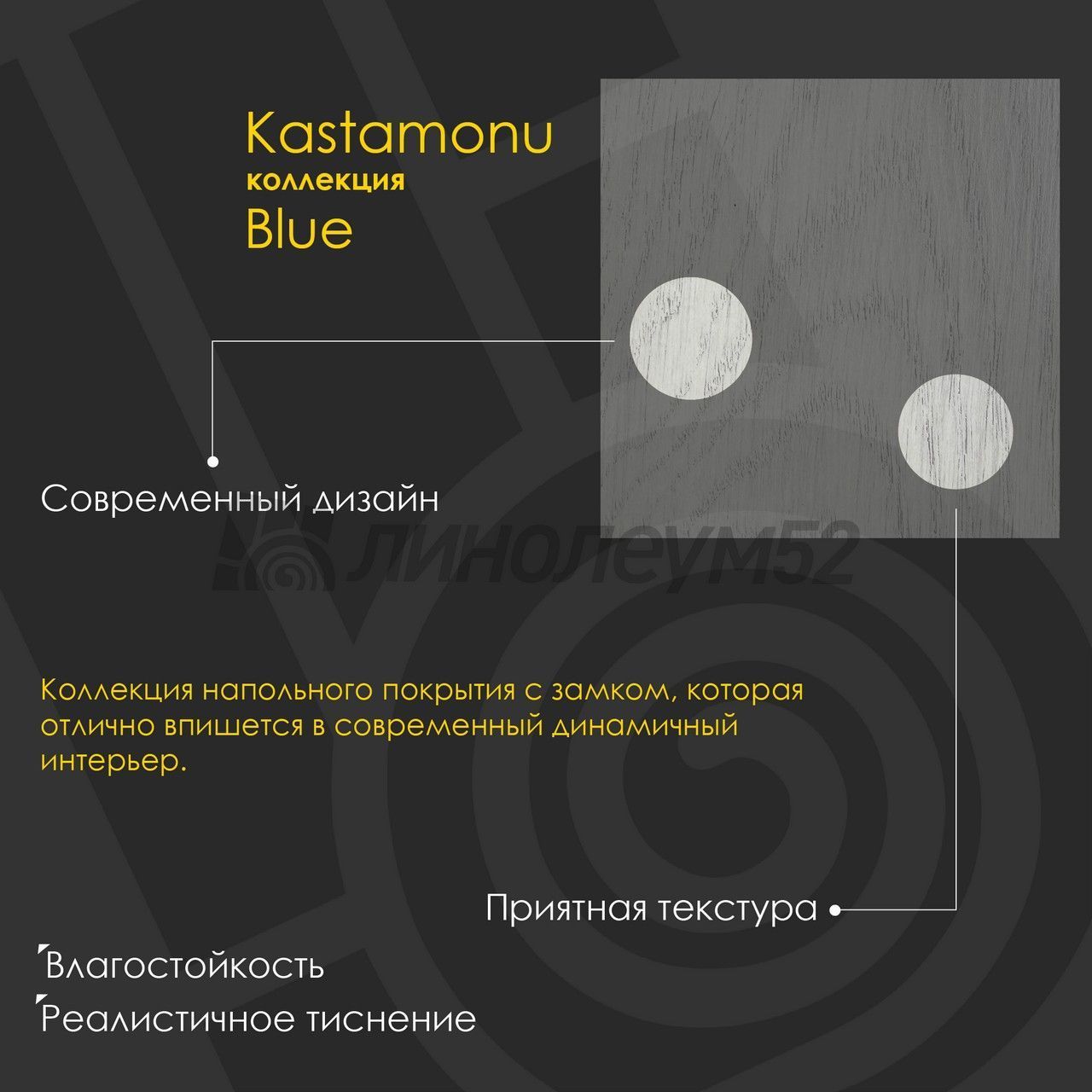 | Дополнительные свойства: | Влагостойкий / Реалистичное тиснение |