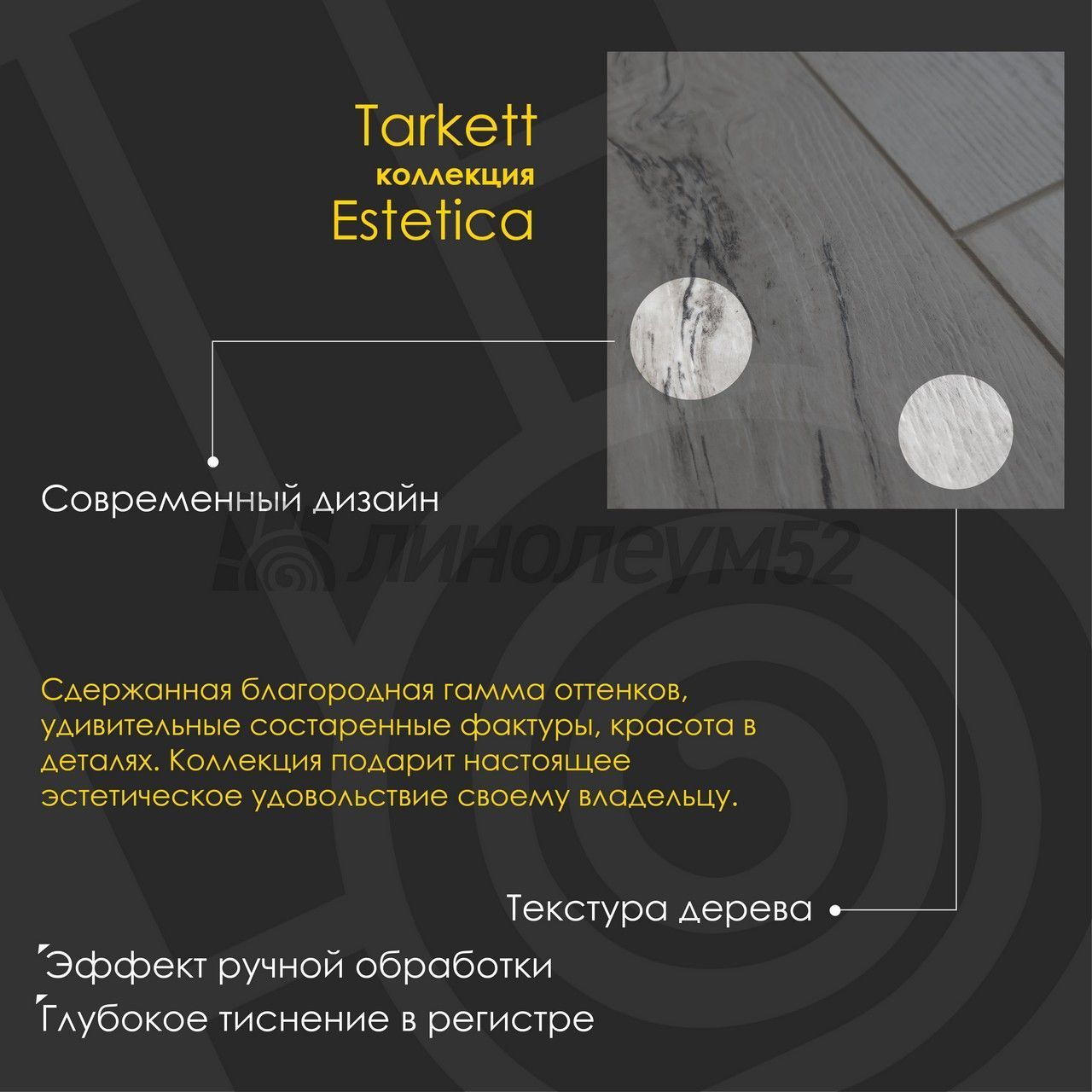 Коллекция "ESTETICA 9/33 4V" - создана нашими дизайнерами для самых искушенных. Сдержанная благородная гамма оттенков, удивительные состаренные фактуры, красота в деталях, эстетика соблазна в каждой линии. Ламинированное напольное покрытие "ESTETICA 9/33 4V" - это рождение чувственного восприятие мира, которое дарит настоящее эстетическое удовольствие своему владельцу. "TARKETT" находится в постоянном поиске и сотрудничестве с архитекторами, проектировщиками, дизайнерами и управляющими компаниями, стремясь сделать жизнь людей комфортнее. Обладая огромным выбором напольных покрытий, "TARKETT" предлагает решения для различного рода зданий, помещений и общественных зон. Широкая линейка продуктов (ПВХ-покрытия, ламинат, паркет) и большой выбор дизайнов позволят создать свой неповторимый стиль. "TARKETT" - это совершенный ламинат для дома...