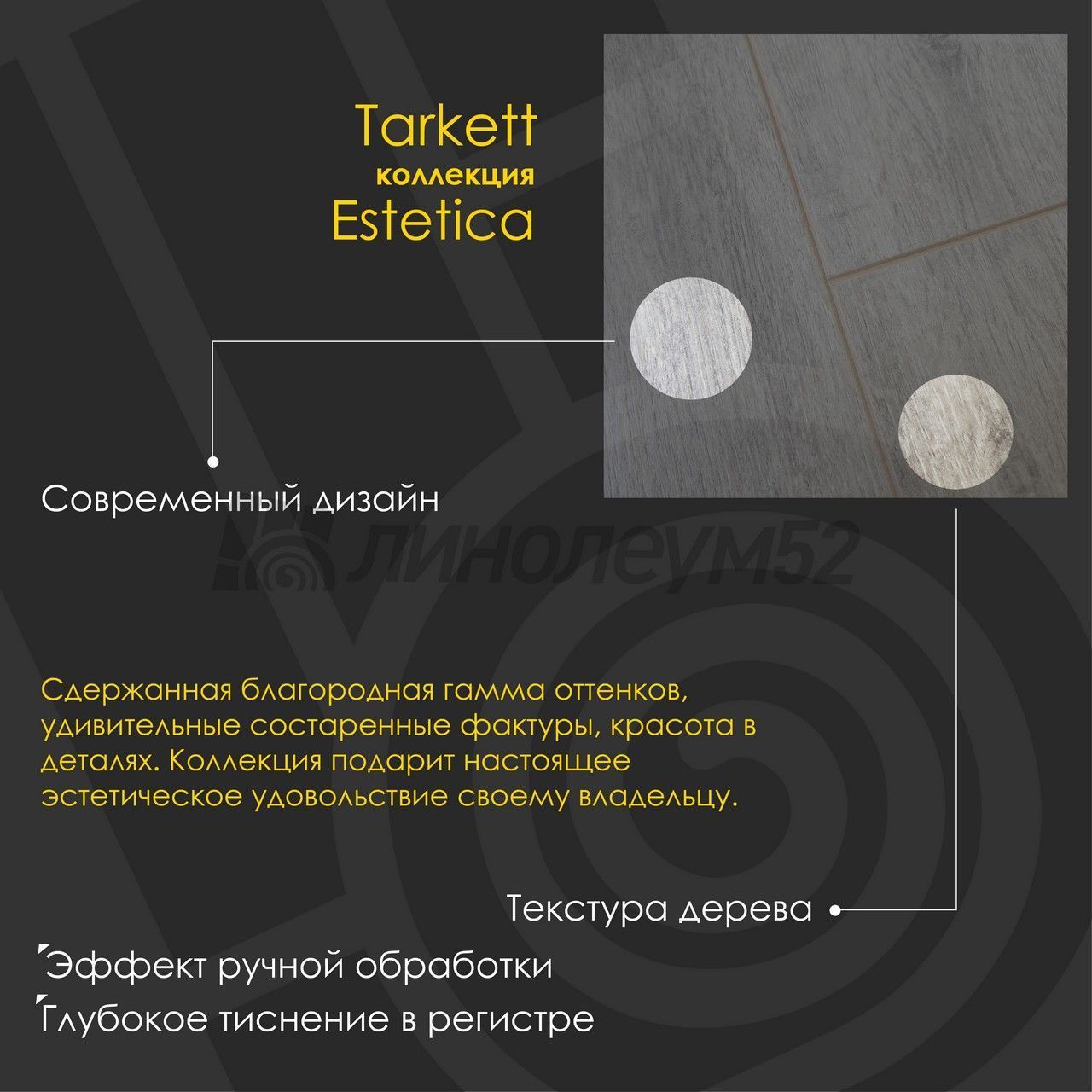 Коллекция "ESTETICA 9/33 4V" - создана нашими дизайнерами для самых искушенных. Сдержанная благородная гамма оттенков, удивительные состаренные фактуры, красота в деталях, эстетика соблазна в каждой линии. Ламинированное напольное покрытие "ESTETICA 9/33 4V" - это рождение чувственного восприятие мира, которое дарит настоящее эстетическое удовольствие своему владельцу. "TARKETT" находится в постоянном поиске и сотрудничестве с архитекторами, проектировщиками, дизайнерами и управляющими компаниями, стремясь сделать жизнь людей комфортнее. Обладая огромным выбором напольных покрытий, "TARKETT" предлагает решения для различного рода зданий, помещений и общественных зон. Широкая линейка продуктов (ПВХ-покрытия, ламинат, паркет) и большой выбор дизайнов позволят создать свой неповторимый стиль. "TARKETT" - это совершенный ламинат для дома...