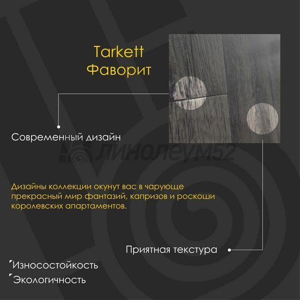 Великолепные классические дизайны дворцового паркета, сложно тонированное палубное дерево и смелые орнаменты дизайнов коллекции "ФАВОРИТ" окунут вас в прекрасный мир фантазий, капризов и роскоши королевских апартаментов. Закройте глаза, прикоснитесь к этому полу и перенеситесь в эту иную, запретную реальность. Обращаем ваше внимание на отличное покрытие от компании "TARKETT". Если у вас остались вопросы, то наши специалисты с радостью помогут найти ответы на каждый из них...