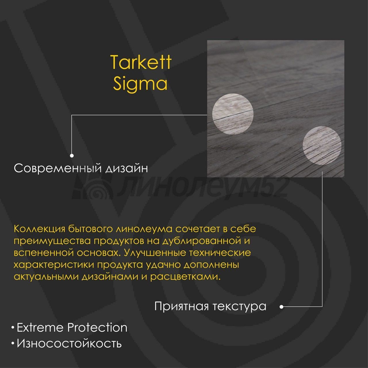 Коллекция бытового линолеума "SIGMA" сочетает в себе преимущества продуктов на дублированной и вспененной основах. Улучшенные технические характеристики продукта удачно дополнены актуальными дизайнами и расцветками, а технология "Живая структура" придает поверхности максимальное сходство с натуральными материалами. "TARKETT" находится в постоянном сотрудничестве с архитекторами, проектировщиками, дизайнерами и управляющими компаниями, стремясь сделать жизнь людей комфортнее. Имея огромный выбор напольных покрытий, "TARKETT" предлагает решения для различного рода зданий, помещений и общественных зон. Широкая линейка продуктов и очень большой выбор дизайнов позволят создать индивидуальный стиль для каждого интерьера. Если у вас остались вопросы, то наши специалисты с лёгкостью помогут найти все ответы...