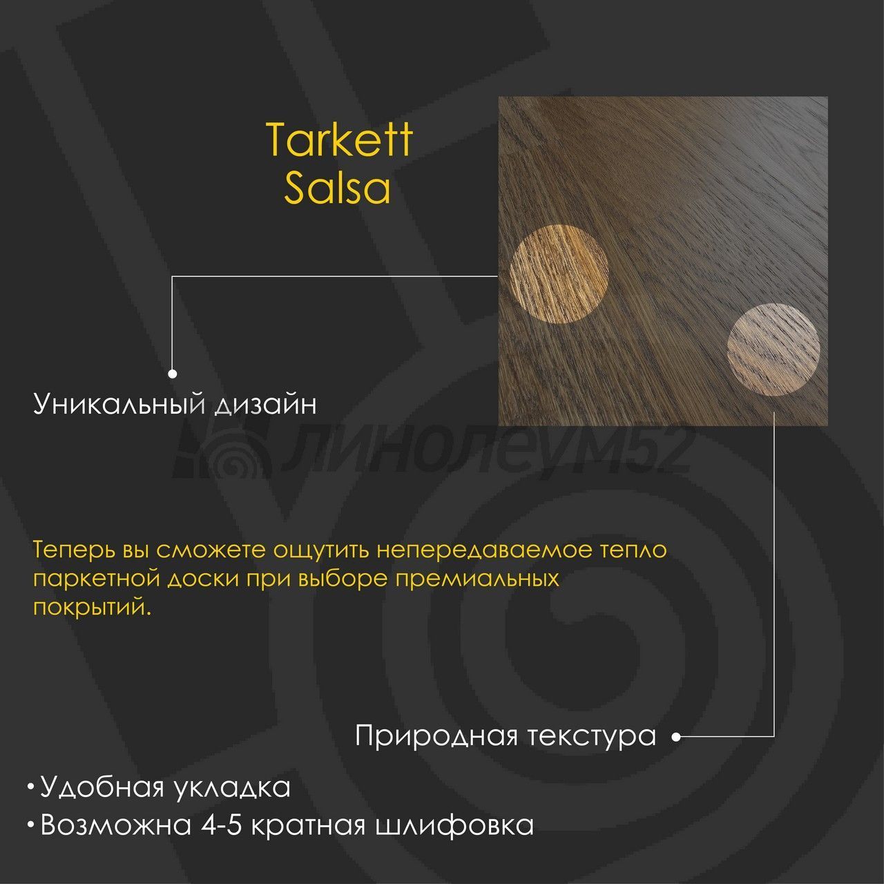 Паркетная доска Паркет SALSA - Дуб СИЕНА / BRUSH от Tarkett Коллекция:: Salsa - Tarkett, Торговая марка:: Tarkett, Тип товара:: Паркетная доска, Применение на покрытие:: Универсальное, Морозостойкость:: Отсутствует, Толщина: 14.00, Ширина:: 194, Цветовая гамма:: Темный, Замковая система:: T`Lock, Коэффициент твердости: 3.7 - BHN, Полуматовый лак, Тип дизайна:: Трехполосный паркет, Допустимые зоны применения:: Выставочный стиль / Жилые помещения / Кабинеты / Торговые помещения, Страна производитель:: Сербия, Срок службы:: 30 лет, Фаска:: Отсутствует, Совместимость с системой тёплый пол: Да (максимум 27°C), Тиснение:: Браширование, Количество сучков: Много, Дополнительный защитный слой, лак: Proteco Lacquer, Уникальные свойства:: Подходит для пола с подогревом +27°С / Продажа товара отпускается в упаковках / Экономичный выбор для покупателей,