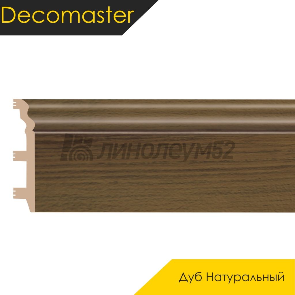 Плинтус - D233 / DECOMASTER Плинтус DECOMASTER D233 - ДУБ НАТУРАЛЬНЫЙ 88 / ПВХ от Тип товара:: Плинтус - Напольный, Применение на покрытие:: Универсальное, Ширина:: 0.023, Длина:: 2.400, Цветовая гамма:: ДУБ НАТУРАЛЬНЫЙ, Допустимые зоны применения:: Жилые помещения, Страна производитель:: Россия, Класс пожарной опасности:: КМ5, Срок службы:: 20 лет, Высота:: 0.120, Кабель-канал:: Да, Уплотнитель по краю:: Да, Материал:: ПВХ, Уникальные свойства:: Крепёж в комплекте идёт / Маскирует неровности по стенам / Простота монтажных работ / Уникальный стиль / Экономичный выбор для покупателей,