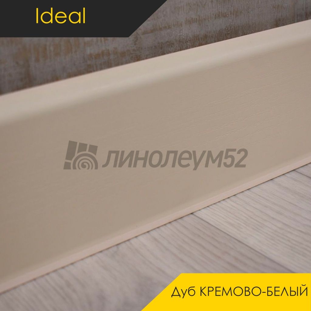 Плинтус - DECONIKA / Ideal Плинтус DECONIKA - Дуб КРЕМОВО-БЕЛЫЙ 033 / ПВХ от iDeal Коллекция:: Deconika - Ideal, Торговая марка:: iDeal, Тип товара:: Плинтус - Напольный, Применение на покрытие:: Универсальное, Морозостойкость:: Отсутствует, Ширина:: 0.022, Длина:: 2.200, Цветовая гамма:: Кремовый, Вид имитируемой древесины:: Дуб - СВЕТЛЫЙ, Допустимые зоны применения:: Жилые помещения / Кабинеты, Дополнительные товары: Заглушки (пара) под плинтус - IDEAL DECONIKA / ФУРНИТУРА / Соединение под плинтус - IDEAL DECONIKA / ФУРНИТУРА / Наружный угол под плинтус - IDEAL DECONIKA / ФУРНИТУРА / Внутренний угол под плинтус - IDEAL DECONIKA / ФУРНИТУРА, Страна производитель:: Россия, Класс пожарной опасности:: КМ5, Срок службы:: 20 лет, Высота:: 0.085, Кабель-канал:: Да, Уплотнитель по краю:: Да, Материал:: ПВХ, Уникальные свойства:: Крепёж в комплекте не идёт / Маскирует неровности по стенам / Простота монтажных работ / Уникальный стиль / Экономичный выбор для покупателей,