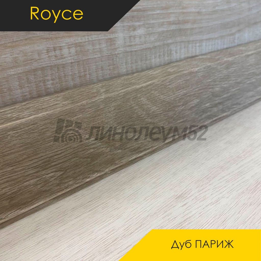 Плинтус - ROYCE 55 / Royce Плинтус ROYCE 55 - Дуб ПАРИЖ 545 / ПВХ от Royce Коллекция:: Classic - Royce, Торговая марка:: Royce, Тип товара:: Плинтус - Напольный, Применение на покрытие:: Универсальное, Морозостойкость:: Отсутствует, Ширина:: 0.022, Длина:: 2.200, Цветовая гамма:: Бежевый, Вид имитируемой древесины:: Дуб - СВЕТЛЫЙ, Допустимые зоны применения:: Жилые помещения / Кабинеты, Дополнительные товары: Заглушки (пара) под плинтус - ROYCE CLASSIC 55 / ФУРНИТУРА / Соединение под плинтус - ROYCE CLASSIC 55 / ФУРНИТУРА / Внутренний угол под плинтус - ROYCE CLASSIC 55 / ФУРНИТУРА / Наружный угол под плинтус - ROYCE CLASSIC 55 / ФУРНИТУРА, Страна производитель:: Россия, Класс пожарной опасности:: КМ5, Срок службы:: 20 лет, Высота:: 0.055, Кабель-канал:: Да, Уплотнитель по краю:: Да, Материал:: ПВХ, Уникальные свойства:: Крепёж в комплекте не идёт / Маскирует неровности по стенам / Простота монтажных работ / Уникальный стиль / Экономичный выбор для покупателей,