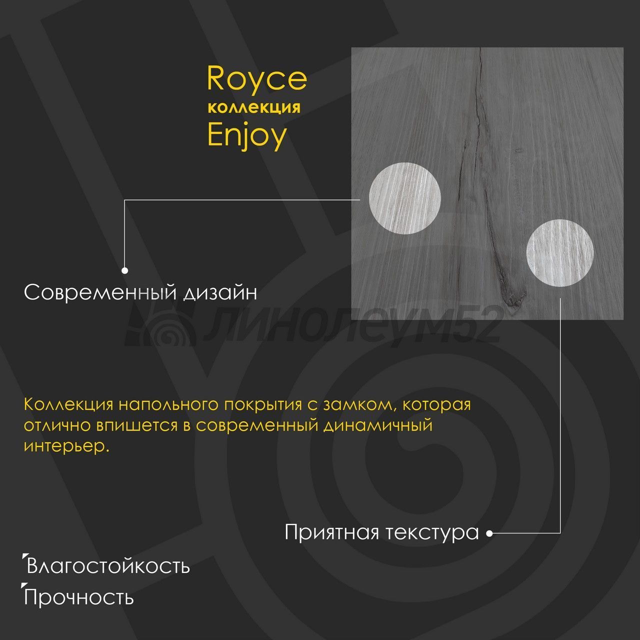 Виниловые полы Кварцвинил - ENJOY / ДУБ БЕРСЕЛЬ E305 от Royce Коллекция:: Enjoy - SPC, Торговая марка:: Royce, Тип товара:: Кварцвинил - SPC, Применение на покрытие:: Универсальное, Морозостойкость:: Отсутствует, Класс применения:: 42, Толщина: 3.5, Ширина:: 180, Длина:: 1200, Замковая система:: CLICK, Допустимые зоны применения:: Выставочный стиль / Жилые помещения / Кабинеты / Торговые помещения, Страна производитель:: Россия, Класс пожарной опасности:: КМ2, Срок службы:: 15 лет, Способ укладки:: Диагональная / Прямая, Фаска:: 4-х сторонняя, Тип укладки:: Замок - CLASSIC, Тип покрытия: SPC - жёсткая, замковая, Уникальные свойства:: Подходит для пола с подогревом +27°С / Продажа товара отпускается в упаковках / Уникальный стиль / Экологичность / Экономичный выбор для покупателей,