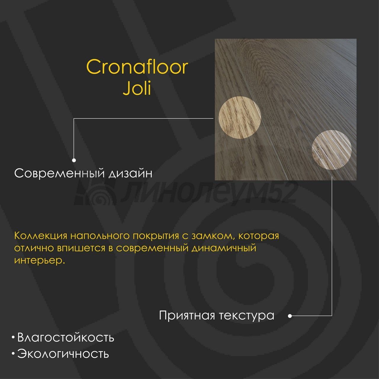 CRONAFLOOR представляет стильную коллекцию SPC ламината JOLI с элегантной шириной планок – всего 150 мм. Благодаря такому формату ваше пространство визуально расширяется и становится более утонченным. 10 уникальных декоров коллекции вдохновлены природной красотой натуральной древесины. Ее текстуры, оттенки и теплота подчеркивают естественную красоту помещения, создавая ощущение комфорта и гармонии с природой. Коллекция SPC ламината JOLI имеет высокие стандарты производства, благодаря чему отличается устойчивостью к механическим и химическим воздействиям. Это обеспечивает его привлекательный внешний вид на долгие годы. Если же у вас ещё остались вопросы, то наши специалисты с лёгкостью помогут найти ответы по каждому покрытию...