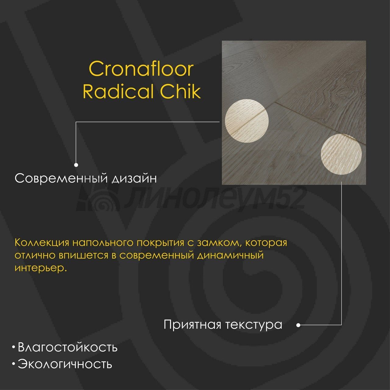 | Уникальные свойства: | Подходит для пола с подогревом +27°С / Продажа товара отпускается в упаковках / Уникальный стиль / Экологичность / Экономичный выбор для покупателей |