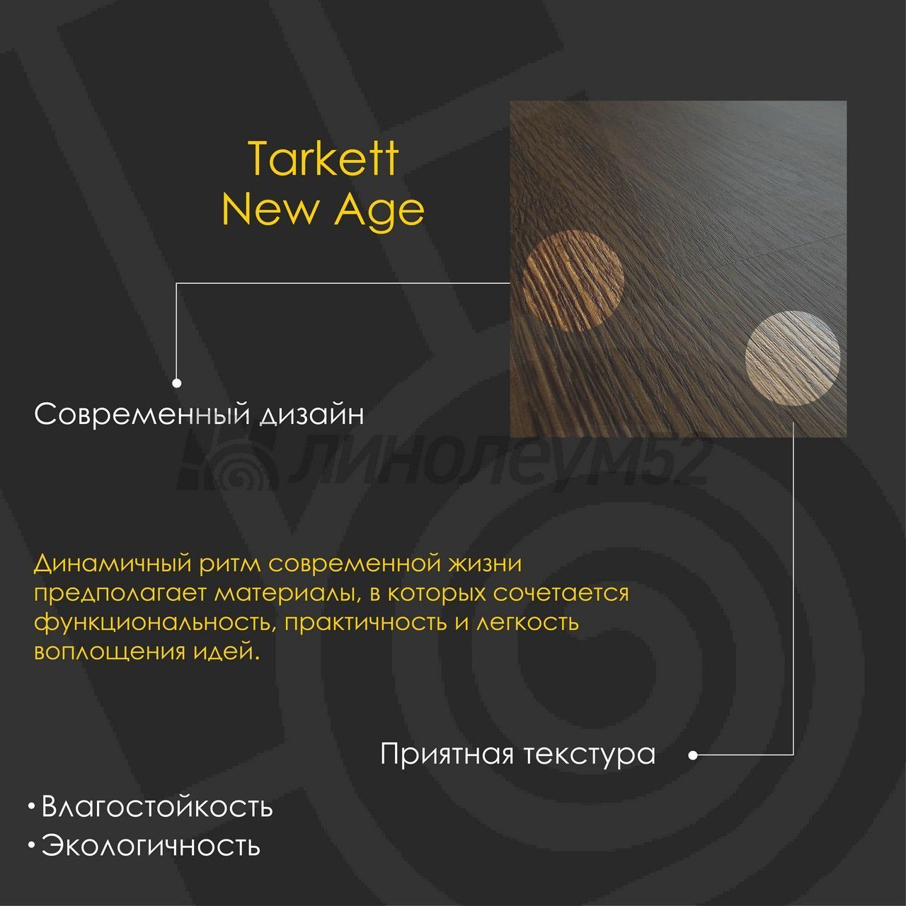| Уникальные свойства: | Подходит для пола с подогревом +27°С / Продажа товара отпускается в упаковках / Уникальный стиль / Экологичность / Экономичный выбор для покупателей |