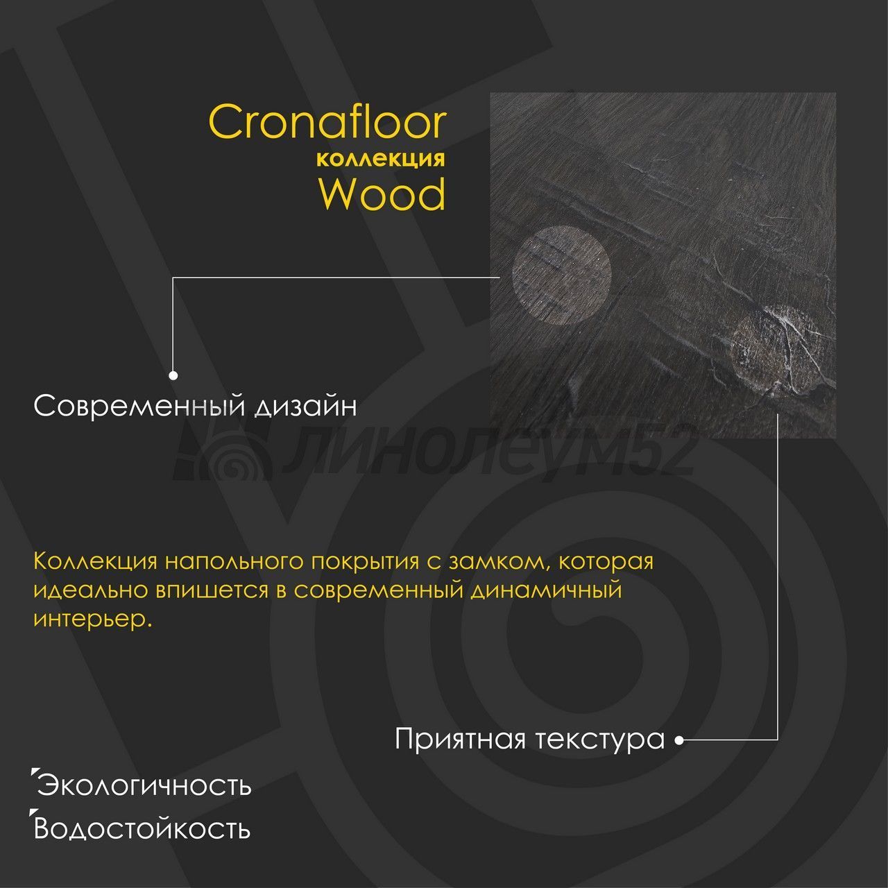 Водостойкий виниловый ламинат на минерально-полимерной основе "SPC" от бренда "CRONAFLOOR" ворвался в нашу жизнь. Классический стиль доски в сочетании с новейшими характеристиками не оставят без внимания наших покупателей. Топовые линейки из серии "WOOD" и "NANO" можно изучить на сайте "ЛИНОЛЕУМ52" или в одном из наших магазинов. Также обращаем ваше внимание, что данное покрытие обладает акустическим комфортом, а также на 100% влагостойкостью. Простота укладки и уборки, также не на последнем месте в списке преимуществ у данного покрытия. Если же у вас ещё остались вопросы, то наши специалисты с лёгкостью помогут найти ответы на каждый из них...