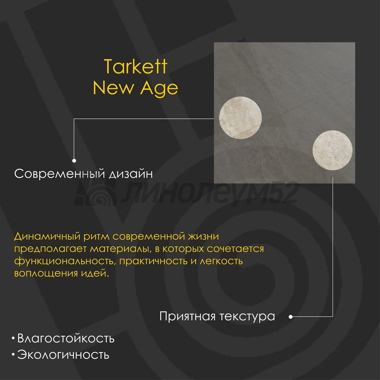 Уникальные свойства: Подходит для пола с подогревом +27°С / Продажа товара отпускается в упаковках / Уникальный стиль / Экологичность / Экономичный выбор для покупателей